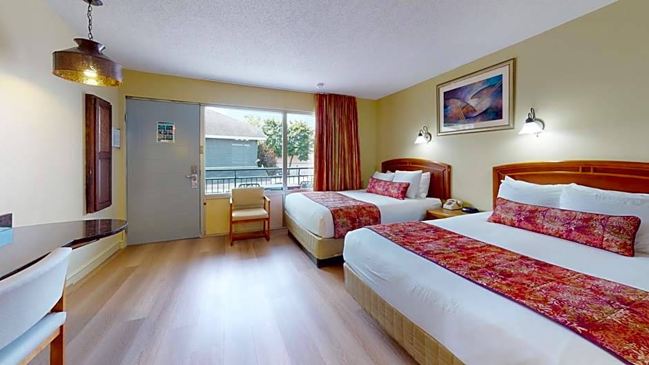This room has 2 queen beds, flat-screen TV, climate control, 10-foot granite table, bathroom with tub/shower, a kitchenette with a small refrigerator, wet bar sink and microwave, hair dryer, iron and ironing board.
